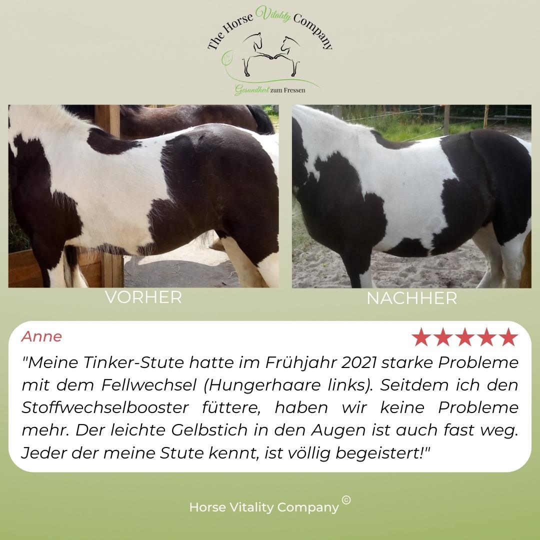 Als langjährige Therapeutin und Trainerin hatte ich viele Pferde mit unterschiedlich stark ausgeprägten Mangelerscheinungen gesehen. Dank meiner Ausbildung zur Gesundheitstrainerin am Menschen war mir klar, welche Nährstoffe die Tiere brauchten. Also beschloss ich, die Apotheke meines Vertrauens zu kontaktieren, um größere Mengen einer selbst zusammengestellten Kräutermischung zu produzieren. Und so entstand die Horse Vitality Company.