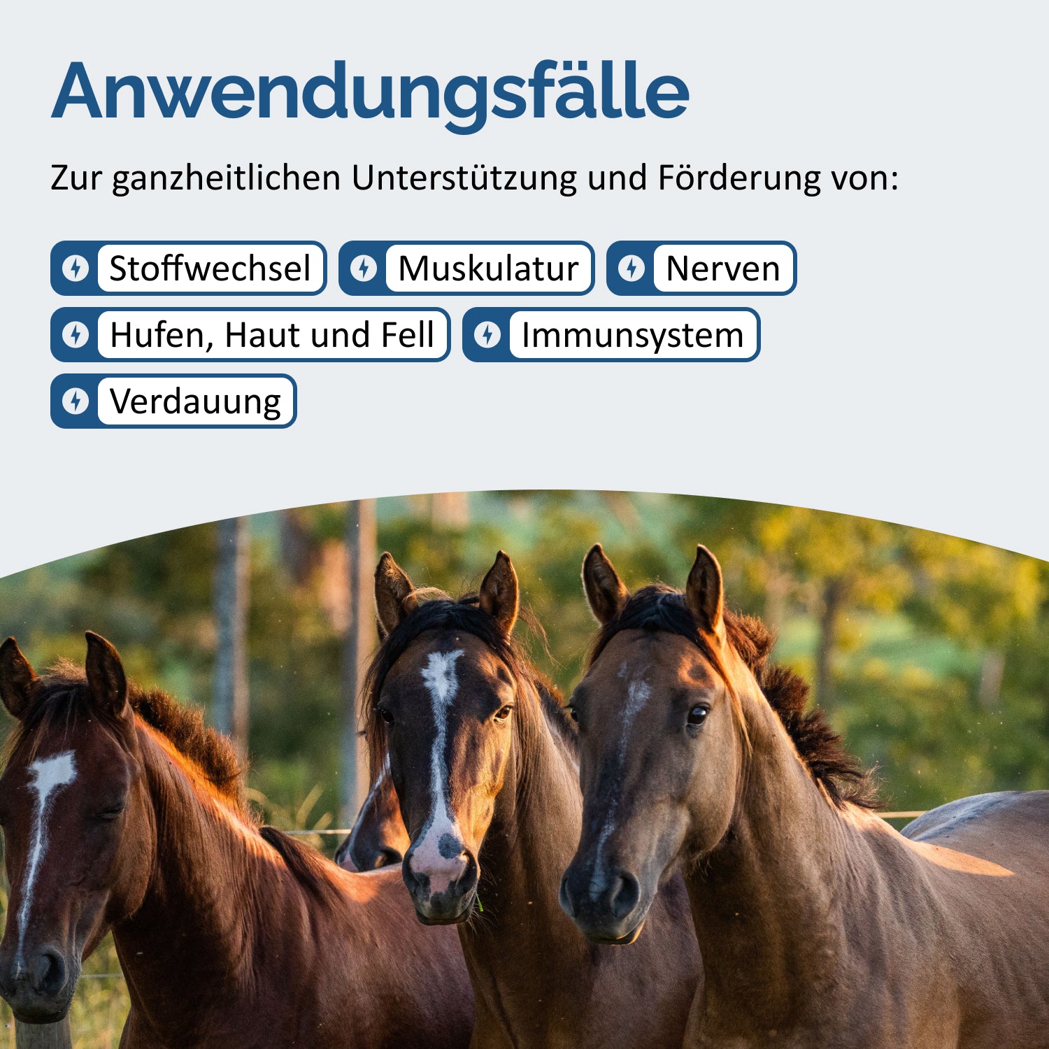 El selenio se absorbe mejor en combinación con zinc y, por lo tanto, se puede administrar eficazmente con el estimulante del metabolismo o la mezcla Hemp PLUS. Sin embargo, los tratamientos con selenio siempre deben consultarse con el veterinario, ya que una sobredosis puede volverse tóxica rápidamente para el caballo.